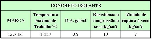Concreto Isolante com baixa condutividade térmica a alta refratariedade. Concreto isolante de pega hidráulica, indicado na elaboração de peças e echimento de bases. Fornecido em sacos com 20 kg.