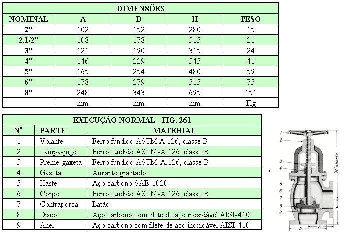 Dimensões centro a face pelo padrão ANSI-B16.10, exceto dimensão “A” nos tamanhos 5″e 6″, que está conforme ABNT-NBR-8326 e NBR-8327.