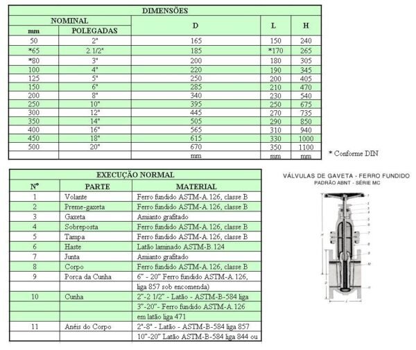 DN 350 a 500 (14″ a 20″) – conforme ABNT-PB-37 série MC.
